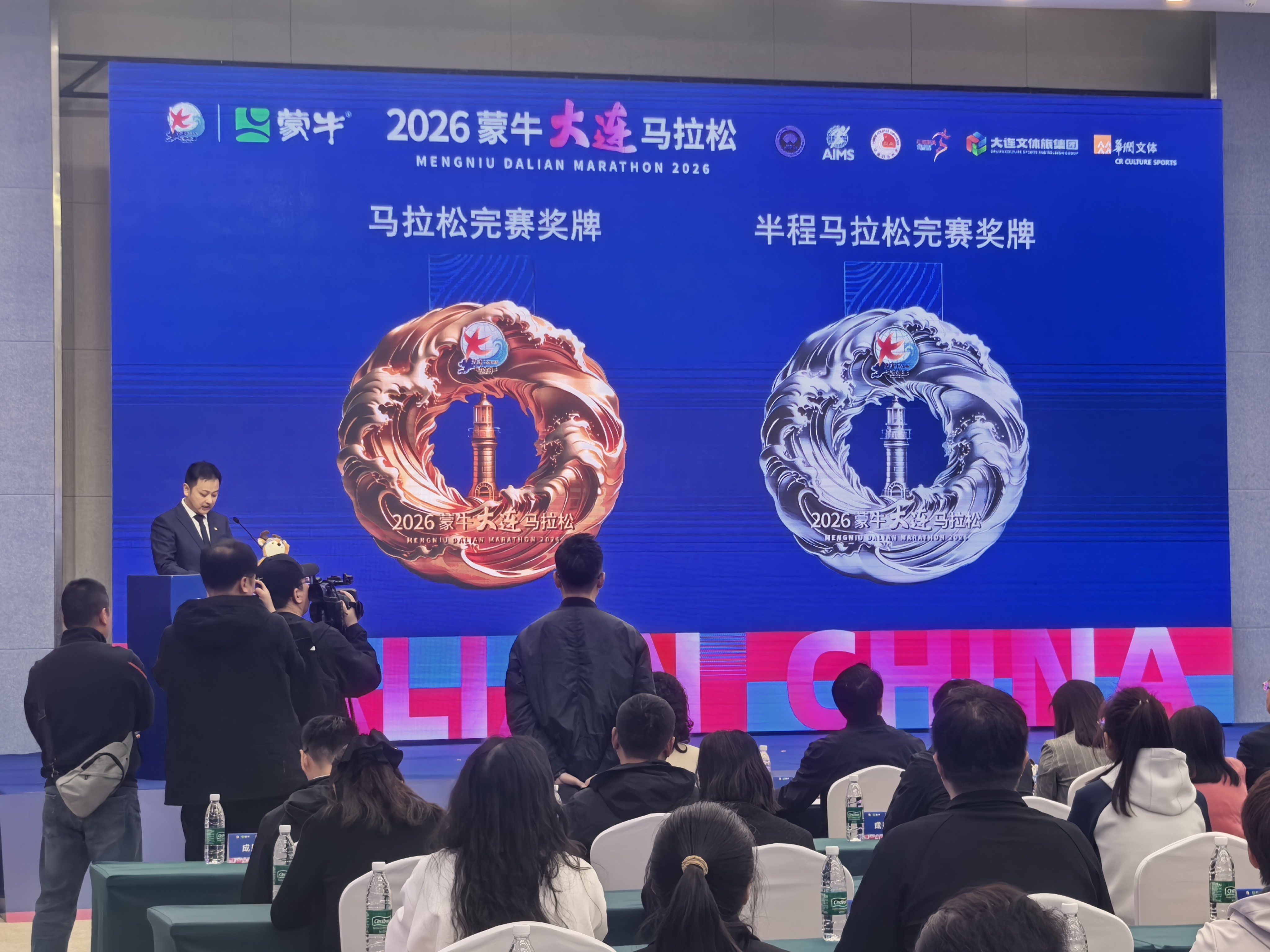 26日7时30分,2026蒙牛大连马拉松将在大连东港商务区鸣枪起跑。在15日召开的新闻发布会上,赛事奖牌亮相,参赛服、吉祥物设计及赛事特许文创产品同时发布。